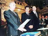 Pacto de Olivos III.Domingo Cavallo asistió a la reunión con el presidente de la Rua convencido de dos cosas: primero, que la renuncia de todos los senadores y su reemplazo mediante una elección popular, es la única manera de resolver políticamente un conflicto que no debe esperar a que se expida la Justicia para entrar en un cauce razonable; la segunda, que difícilmente de la Rua vaya a promover semejante movida porque los compromisos con su partido se lo impiden y porque no puede aparecer dándole la razón a Chacho Álvarez quien viene reclamando lo mismo desde un principio. Igualmente, y aunque el gobierno (y el Menemismo) no accedan a la propuesta cavallista, no caben dudas de que el planteo del líder de Acción por la República fue el correcto: como representante de la tercera minoría parlamentaria y receptario de un 10% de los votos a nivel nacional, tiene suficiente entidad política para insistir con esa medida. Pero hay una razón más para desconfiar que el camino siga al fondo de esta cuestión: Ya Está en marcha el Pacto de Olivos III. así como de los sobornos en el Senado no quedan recibos archivados en una carpeta, pero ya nadie duda de que existieron, tampoco podemos probar el acuerdo de impunidad alcanzado entre el Menemismo y el Delarruismo (a estas alturas ya no se puede hablar de la Alianza, porque las diferencias entre el FrePaSo y la UCR por este tema son casi insalvables). |